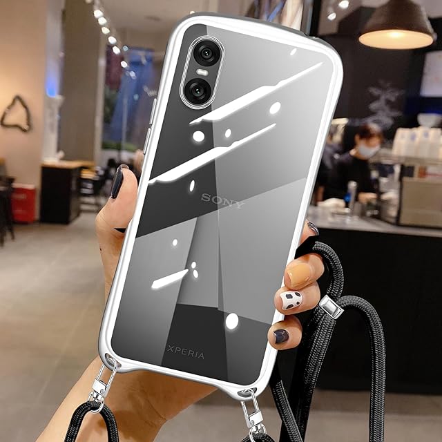 Xperia 10 VI 用の ケース ショルダー クリア xperia10vi SO-52E SOG14 スマホケース カバー 耐衝撃 肩掛け 首掛け 斜めかけケース 可愛い かわいい 韓国 透明 TPU 長さ調整可能 取り外し可能(シルバー)