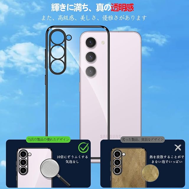 商品名:【FULEEYUHN】Samsung Galaxy S23 ケース クリア ギャラクシー S23 カバー 透明 TPU素材 耐衝撃 薄型 軽量 SC-51D SCG19 対応 韓国 ファッション スマホケース メッキ加工 黄変防止 人気 ストラップホール付き ワイヤレス充電対応(ブラック)