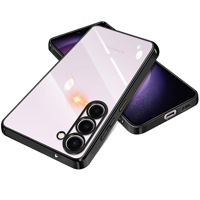 【FULEEYUHN】Samsung Galaxy S23 ケース クリア ギャラクシー S23 カバー 透明 TPU素材 耐衝撃 薄型 軽量 SC-51D SCG19 対応 韓国 ファッション スマホケース メッキ加工 黄変防止 人気 ストラップホール付き ワイヤレス充電対応(ブラック)