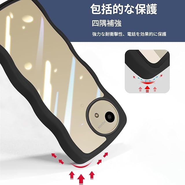 商品名:AQUOS R9/R10 かわいい ケース クリア 波状フレーム うねうね 耐衝撃 SH-51F/SH-51EE スマホケース 透明 滑り止め 人気 可愛い 女性用 女子向け アクオス R9/R10 カバー 落下防止 ワイヤレス充電対応 (ブラック)