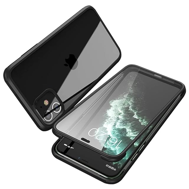 YSAN iPhone11Pro 用 ケース 360度全面保護 [100%画面感度][両面ガラス] クリアフルカバー 米軍MIL規格 透明 耐衝撃 薄型 軽量 シリコンフレーム 滑り止めバンパー Qi充電対応 (iphone11pro, ブラック)