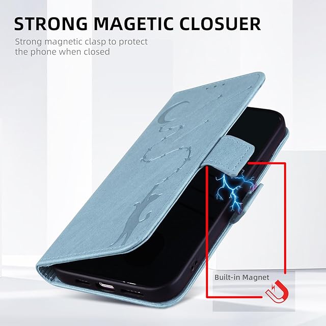 Moto g75 ケース モトローラ モト G75 ケース スマホケース moto g75 カバー 手帳型 スタンド機能 g75 ケース マグネット カード収納 全面保護 適応 6.78インチ 可愛い 猫柄 柔らかいTPU motorola g75 ケース - アイスブルー