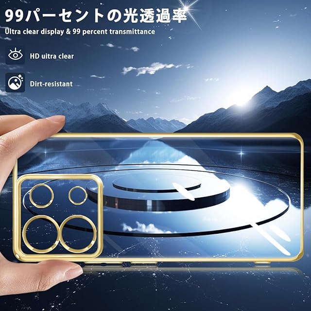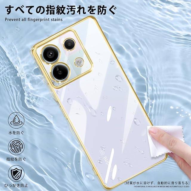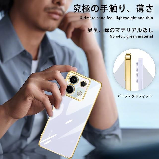 商品名:ZHUAZHULE Xiaomi Redmi Note 13 Pro 5G ケース クリア レッドミ Note 13 Pro 5G スマホケース メッキ加工 耐衝撃 カバー 透明 TPU レンズ保護 ストラップホール付き 薄型 黄変防止 擦り傷防止 人気 (ゴールド)