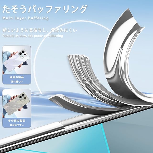 【全面保護】高品質TPU素材は弾力があるので、突然の落下からのダメージを軽減し。高耐衝撃構造で作られ、落下時に発生する衝撃を各コーナー部の内側で効果的に吸収し、保護機能を最大化します。縁を高くした設計とカメラガードレンズフレームにより、携帯電話のスクリーンとカメラを傷などから保護します。マイクロドット加工で密着痕がつかず、効率よく排熱できます。