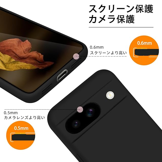 商品名:inxhey Google Pixel8a ケース シリコン 耐衝撃 カバー グーグル ピクセル 8a ケース ストラップホール付き シリコーン スマホケース マット質感 持ちやすい 落下防止 衝撃吸収 すり傷防止 柔軟 軽量 薄型 携帯ケース (ブラック)