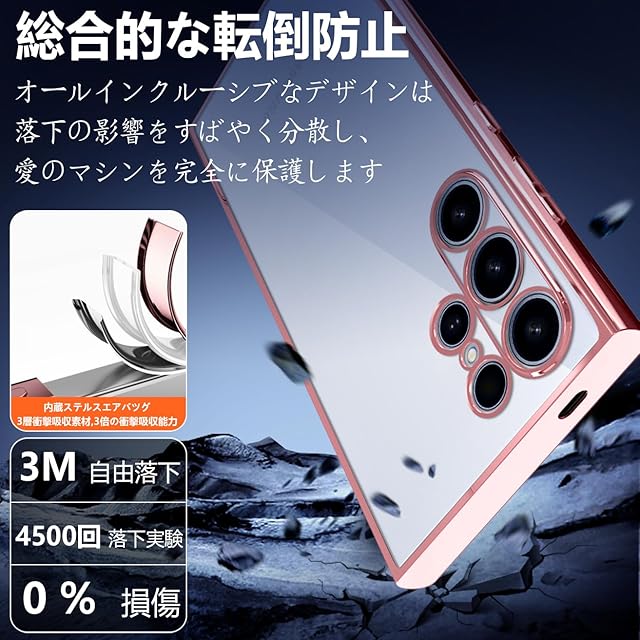 商品名:Samsung Galaxy S24 ultra ケース クリア SC-52E SCG26 耐衝撃 薄型 米軍MIL規格 tpu ギャラクシー s24ultra カバー 防塵 指紋防止 一体型 人気 傷·落下防止(ローズゴールド)
