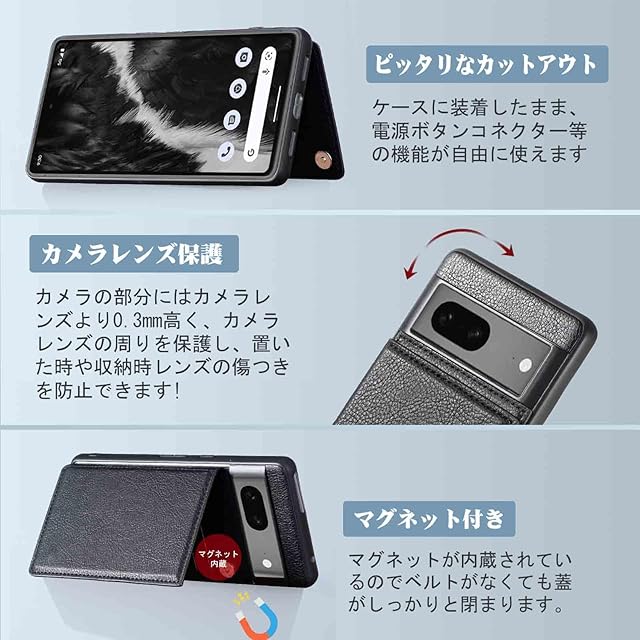 商品名:【Aqier】For Pixel 6A 5G au Softbank ケース 背面手帳型 軽い薄い 純色 レザーケース(ブラック)グーグル ピクセル6a 5g ケースカード入れ 片手操作 バックカバー ソフトバンクpixel6a 黒