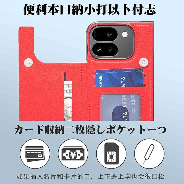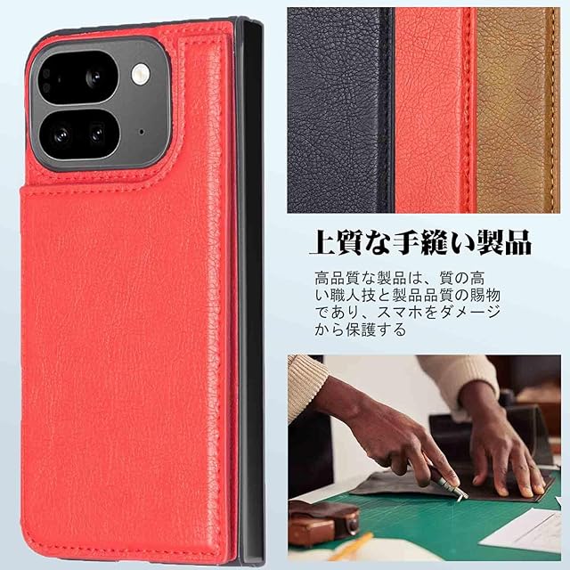 【Aqier】For Pixel 9 Pro Fold 用 ケース 背面手帳型 軽い薄い 純色 レザーケース (レッド) グーグル ピクセル9プロ フォールド ケースカード入れ 片手操作 バックカバー pixel9pro fold 赤色