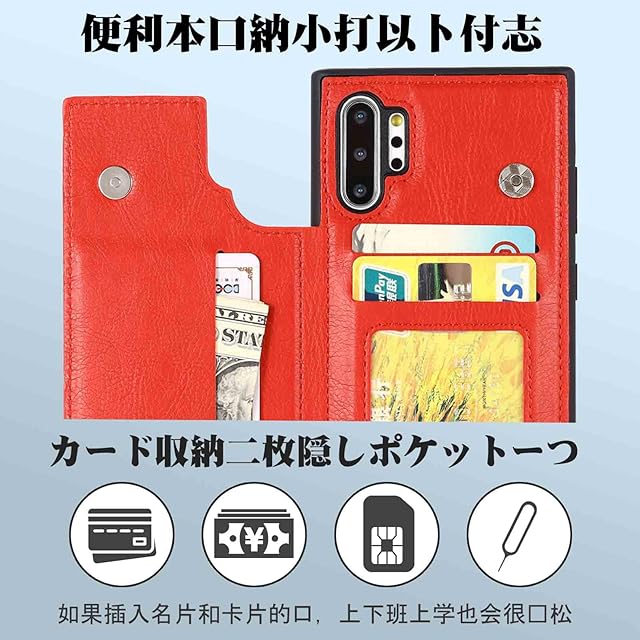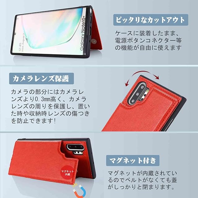 商品名:【Aqier】For Galaxy Note10 Plus/Note 10 Pro/docomo SC-01M/au SCV45 ケース 背面手帳型 軽い薄い 純色 レザーケース(レッド)ギャラクシーノート 10プラス 10テン ドコモsc01m ケースカード入れ 片手操作 バックカバー サムスンnote10+ 赤色