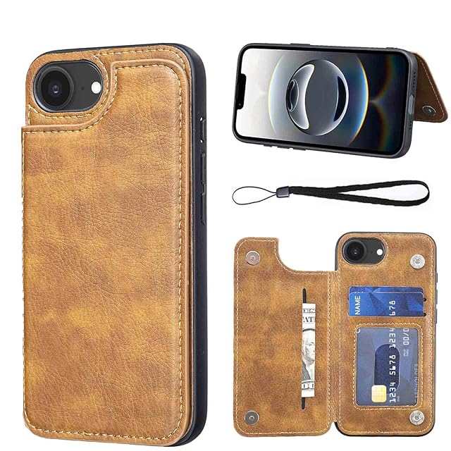 商品名:【Aqier】For iPhone 16E 6.1 inch 用 背面ケース(レトロブラウン)アイフォン16e ケースカード入れ 片手操作 バックカバー あいほん16e 薄い茶