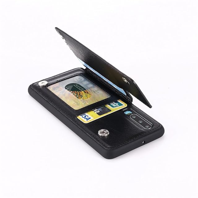 商品名:【Aqier】For P30 ケース 背面手帳型 軽い薄い 純色 レザーケース(ブラック)ファーウェイp30 ケースカード入れ 片手操作 バックカバー huaweip30 黒