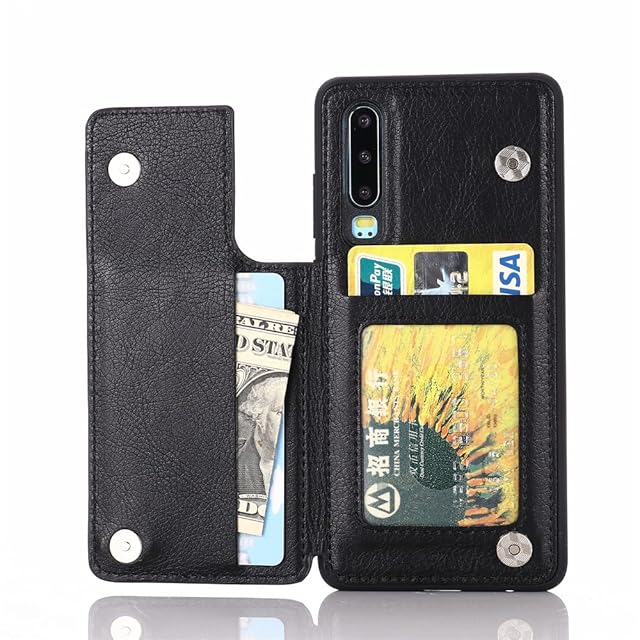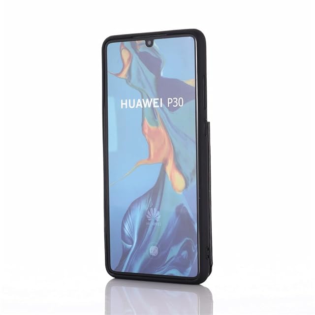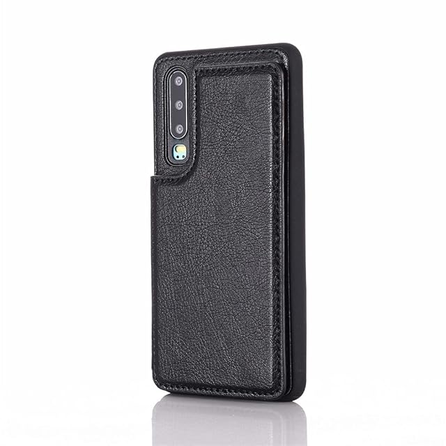 【Aqier】For P30 ケース 背面手帳型 軽い薄い 純色 レザーケース(ブラック)ファーウェイp30 ケースカード入れ 片手操作 バックカバー huaweip30 黒