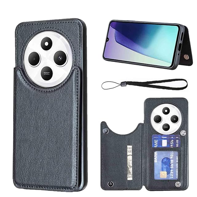 商品名:【Aqier】For XIAOMI Redmi 14C 用 ケース 背面手帳型 軽い薄い 純色 レザーケース(ブラック)シャオミ レッドミー14c ケースカード入れ 片手操作 バックカバー シャオミredmi14c 黒