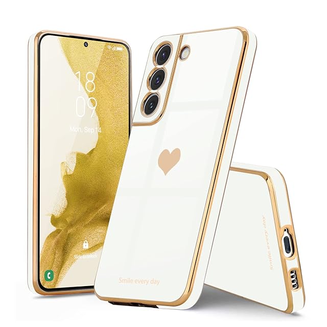 Teageo 適用 Samsung Galaxy S22 ケース対応 少女の 可愛い 愛心の形 メッキ加工保護ケース 薄型 TPU ワイヤレス充電対応 傷に強い 耐衝撃 落下防止 電話カバー Samsung Galaxy S22 用 スマホケース(ホワイト)