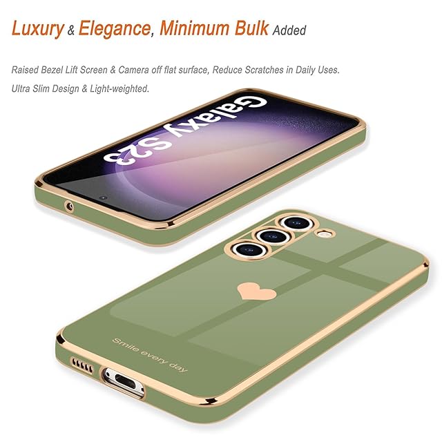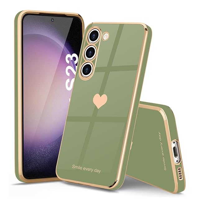 Teageo 適用 Samsung Galaxy S23 ケース対応 少女の 可愛い 愛心の形 メッキ加工保護ケース 薄型 TPU ワイヤレス充電対応 傷に強い 耐衝撃 落下防止 電話カバー Samsung Galaxy S23 用 スマホケース(ライトグリーン)