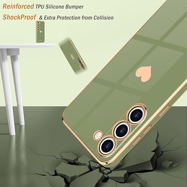 商品名:Teageo 適用 Samsung Galaxy S23 ケース対応 少女の 可愛い 愛心の形 メッキ加工保護ケース 薄型 TPU ワイヤレス充電対応 傷に強い 耐衝撃 落下防止 電話カバー Samsung Galaxy S23 用 スマホケース(ライトグリーン)
