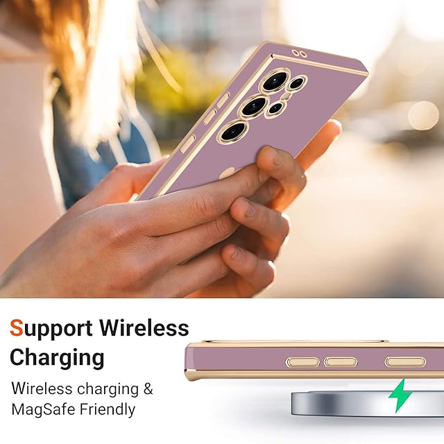 Teageo 適用 Samsung Galaxy S24 Ultra ケース対応 少女の 可愛い 愛心の形 メッキ加工保護ケース 薄型 TPU ワイヤレス充電対応 傷に強い 耐衝撃 落下防止 電話カバー Samsung Galaxy S24 Ultra用 スマホケース(さくらパープル)