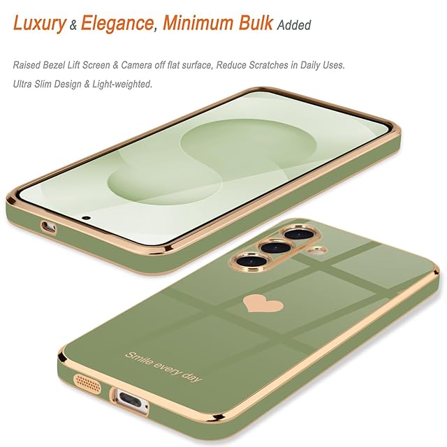 Teageo 適用 Samsung Galaxy S25 ケース対応 少女の 可愛い 愛心の形 メッキ加工保護ケース 薄型 TPU ワイヤレス充電対応 傷に強い 耐衝撃 落下防止 電話カバー Samsung Galaxy S25 用 スマホケース(ライトグリーン)