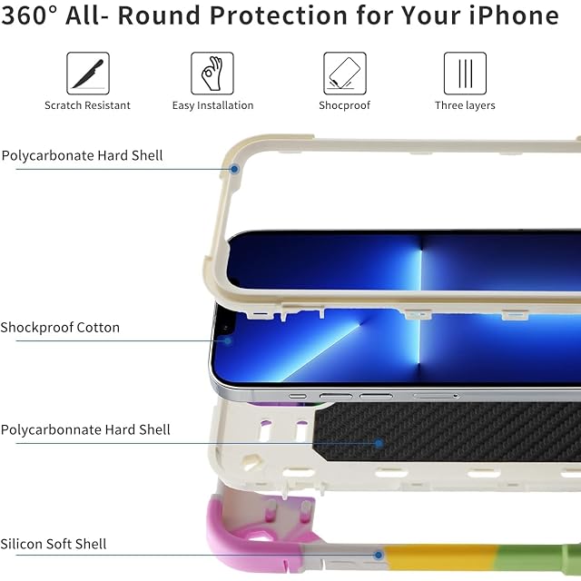 ⭐【三層保護&耐衝撃】新たに改良された、衝撃吸収シリコン製ボディーは強い衝撃からiPhoneをしっかり保護します。ビジネス、アウトドア、工事、家事など様々なシーンで大活躍。子供、キッズがいる家庭にもおすすめ。耐衝撃で満足できるアイフォン カバーです。