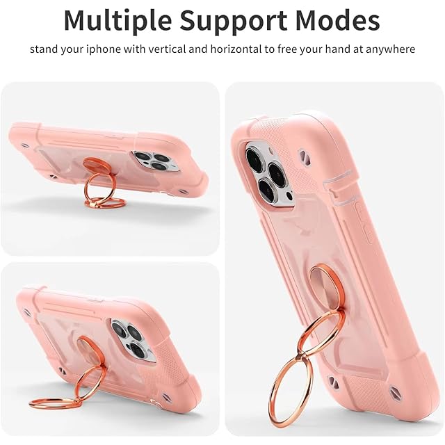 商品名:iPhone 15 Plus ケース 耐衝撃 頑丈 360度回転スタンド リング付き付き 虹色 かわいい アイフォン15 Plus ケース 車載ホルダー対応 落下防止 ストラップホール付き アウトドア 子供 仕事用 (ピンク)