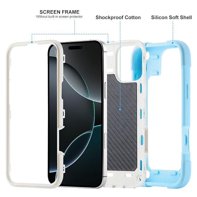 商品名:PboyiqiS For iPhone 16 Pro ケース 耐衝撃 頑丈 360度回転スタンド リング付き付き 虹色 かわいい アイフォン16 プロ ケース 車載ホルダー対応 落下防止 ストラップホール付き アウトドア 子供 仕事用 (薄ブルー, iPhone 16 Pro)