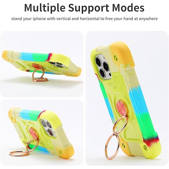 商品名:PboyiqiS For iPhone 16 Pro Max ケース 耐衝撃 頑丈 360度回転スタンド リング付き付き 虹色 かわいい アイフォン16 プロ マックス ケース 車載ホルダー対応 落下防止 ストラップホール付き アウトドア 子供 仕事用 (虹色黄, iPhone 16 Pro Max)