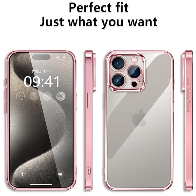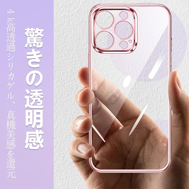Montue iPhone 15 Pro Max 用 ケース クリア 耐衝撃 米軍MIL規格 可愛い 韓国 薄型 軽量 スマホケース アイフォン15 Pro Max 用 カバー ワイヤレス充電対応 (ピンクゴールド)