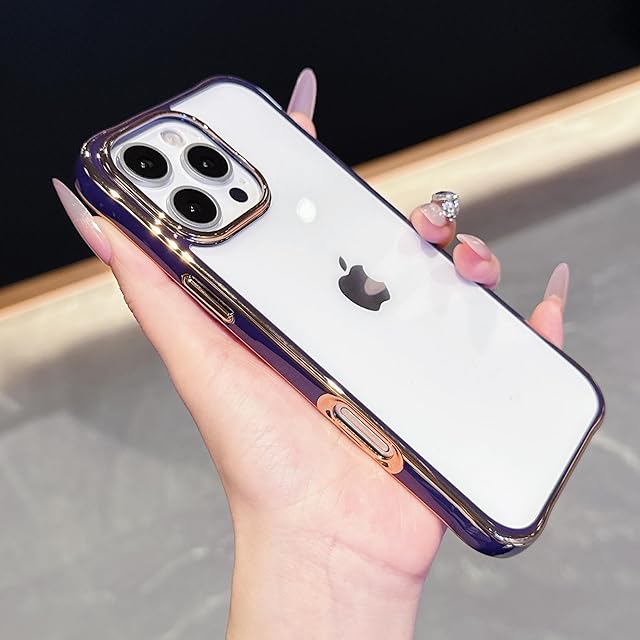 ZTOFERA for iPhone 13 Pro ケース、クリスタルクリアアクリルバック、ソフトメッキエッジ、取り外し可能な電話レンズ、スリム透明バンパーケース for iPhone 13 Pro 濃い紫