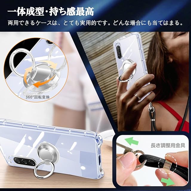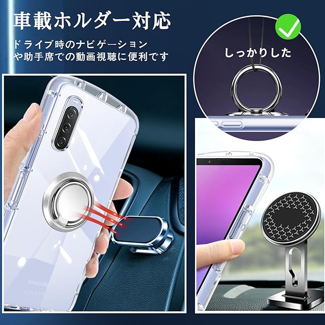 商品名:Sony Xperia 10 V ケース リング クリア SO-52D SOG11 カバー ショルダー ストラップ付 透明 TPU 耐衝撃 スタンド機能 横置き 車載ホルダー 韓国 可愛い エクスペリア 10V so-52d sog11 スマホケース
