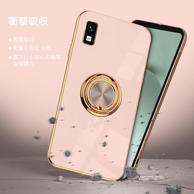 LuFiYa AQUOS wish3 | SH-53D 用 ケース リング付き カバー TPU素材 スタンド機能 アクオス wish3 スマホケース 軽量 耐衝撃 薄い 擦り傷防止 落下防止 車載ホルダー 360°回転 ケース AQUOS wish3 対応 (ピンク)
