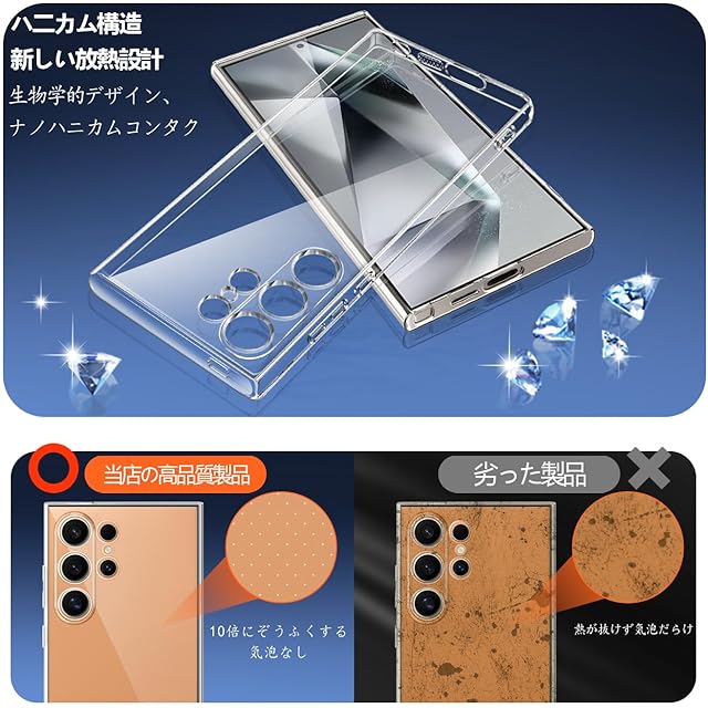 【高透明ケース】 透き通った99%高い透明度を持ちます。オシャレで、スマートフォンの隠さないスタイリッシュで高級感溢れているシンプルなケースです、s24ultra本来の美しさやカラーを楽しめます。これ以外に、マイクロドット加工で密着痕がつかず、効率よく排熱できます。
