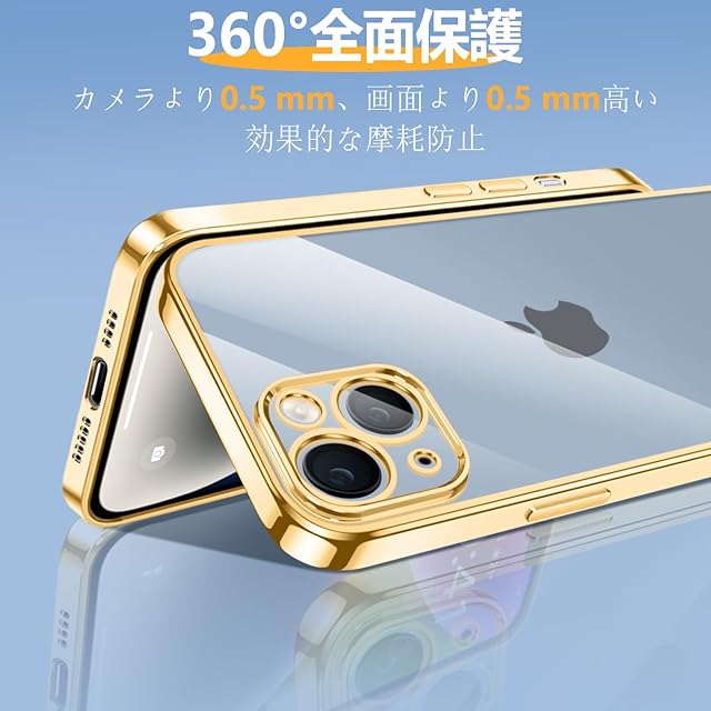 iPhone 14 ケース クリア 耐衝撃 透明 アイフォン14 カバー メッキ加工 完全な保護 黄変防止 落下防止 ファッション 薄型 軽量 TPU 柔らかい ワイヤレス充電 人気 保護カバー(ゴールド)