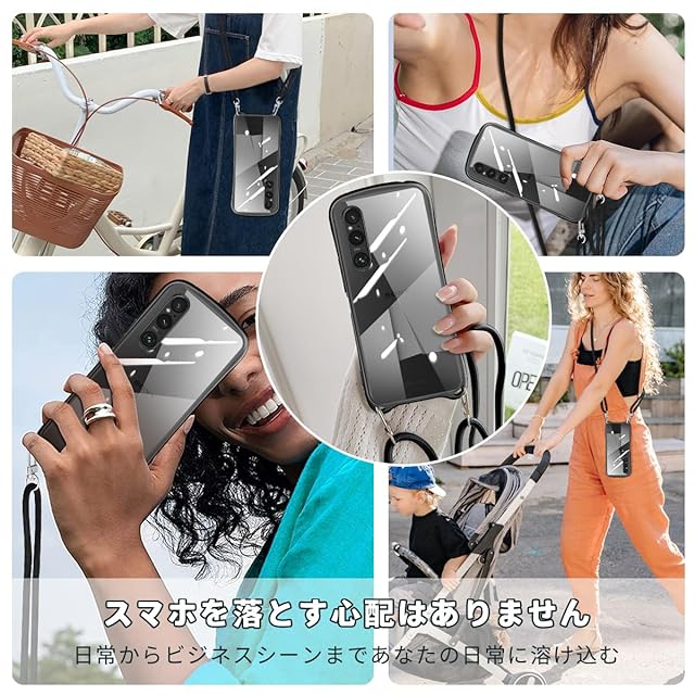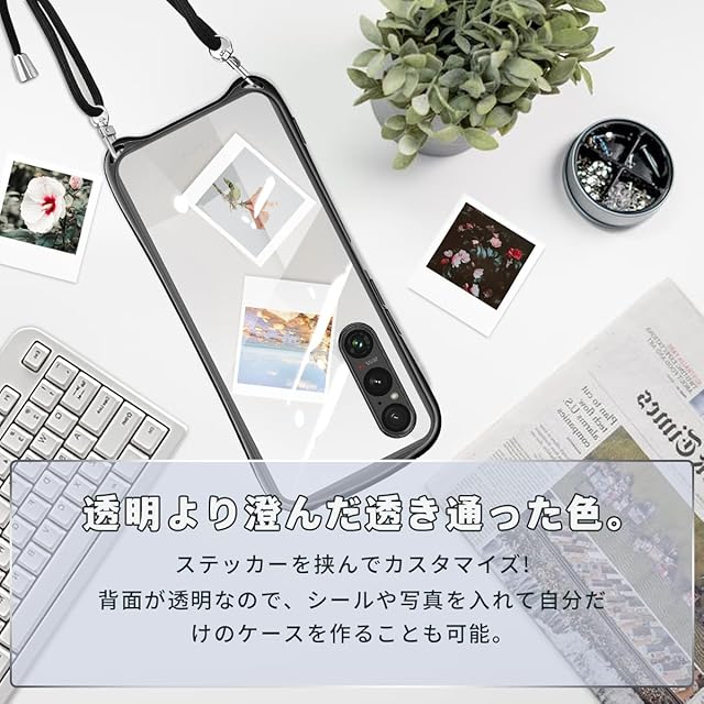 商品名:Sony Xperia 1 V ケース クリア ショルダー ストラップ付き SO-51D SOG10 カバー 透明 肩掛け 斜めかけ TPU シリコン メッキ加工 耐衝撃 全面保護 薄型 韓国 可愛い 縄掛け エクスペリア 1V スマホケース (ブラック)