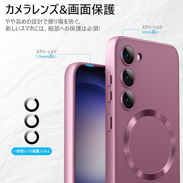 【Magnetic対応・一体型レンズ保護】Galaxy S22 用ケース 耐衝撃 柔軟TPU SC-51C SCG13 ケース 軽量 薄型 ストラップホール付き ギャラクシー S22 用ケース 指紋防止 耐久性 人気 6.1インチ 携帯カバー ピンク WY93-15