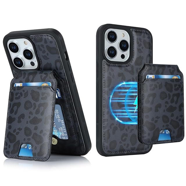 Havaya iPhone11ケース MagSafe 対応 iPhone11 ケース マグセーフ 耐衝撃 背面カード収納 分離式 ワイヤレス充電対応 フェイクレザー(6.1インチ対応)-ブラック (ヒョウ柄)