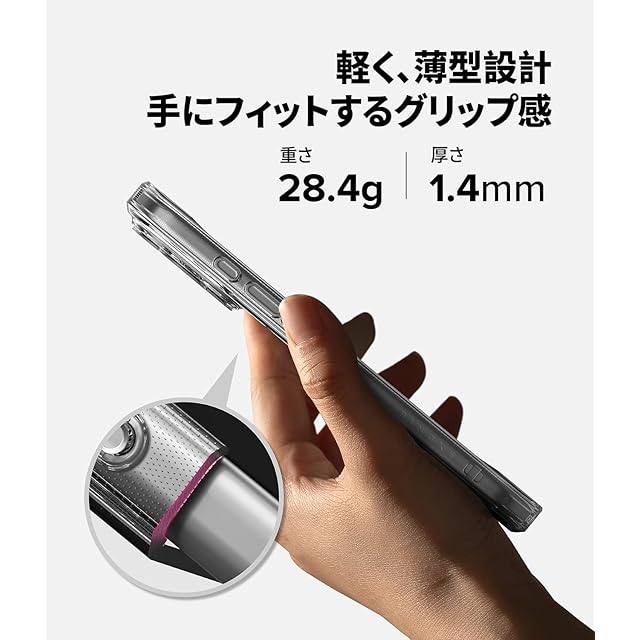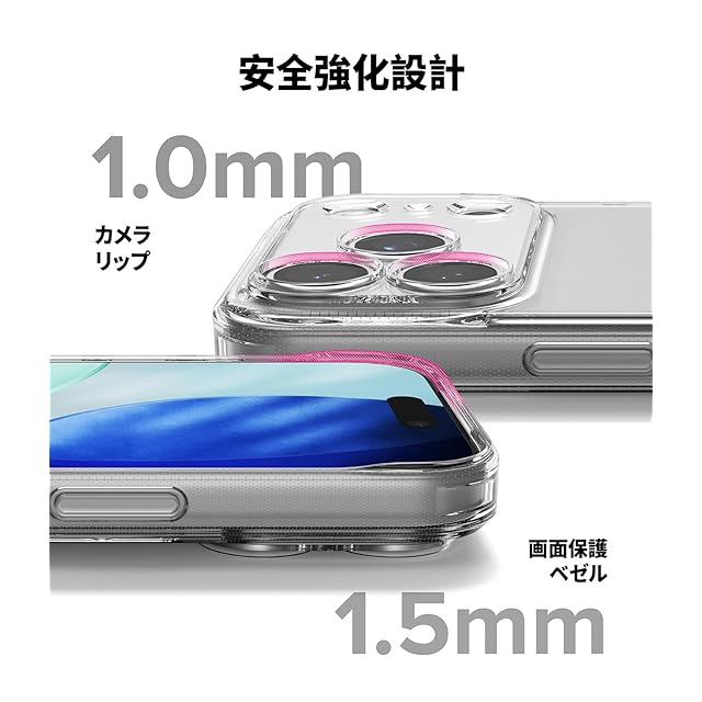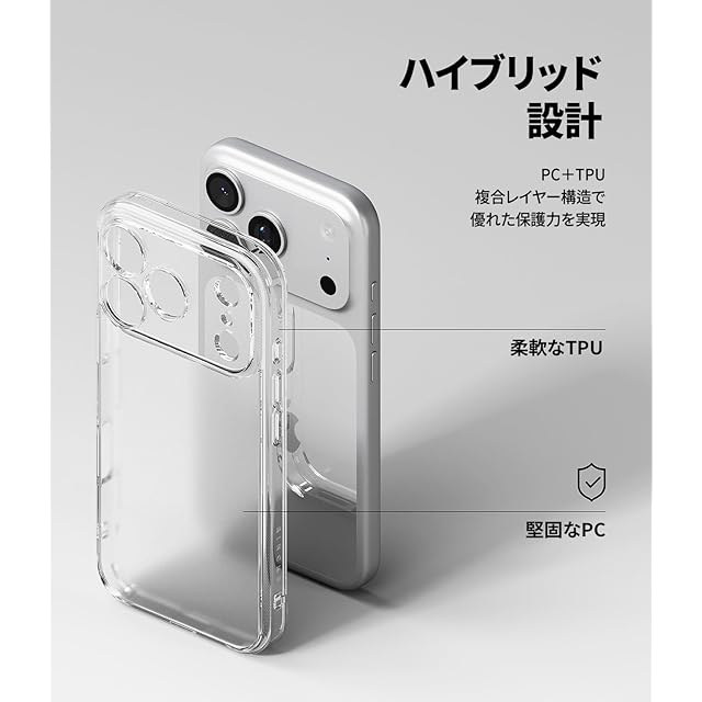 【Ringke】 iPhone 17 Proのデザインをそのまま魅せる、ミニマルでクリアなRingke Fusionケース。<br>透明なポリカーボネート背面と柔軟なTPUバンパーを組み合わせたハイブリッド構造で、見た目の美しさと高い保護力を両立しました。<br>TPU素材は改良され、黄ばみにくく長時間クリアな状態を保ちます。<br>耐衝撃性に優れ、日常の落下や擦り傷からスマートフォンをしっかりと守ります。<br>スリムで軽量な設計により、手に馴染みやすく持ち運びも快適です。<br>ケースのエッジはわずかに高く設計されており、カメラレンズや画面が直接テーブルや床に触れないように配慮されています。<br>ボタン部分は保護されながらも押しやすい構造で、操作感を損なわず快適に使用可能。<br>スピーカーや充電ポート周りは精密にカットされており、多くのケーブルやアクセサリーに対応します。<br>ケース両側に設けられたストラップホールにより、お好みのストラップやアクセサリーを取り付けることができます。<br>ワイヤレス充電やApple Payなどのタップ決済機能にも完全対応。<br>機能性とスタイルを兼ね備えた、定番の人気クリアケースです。