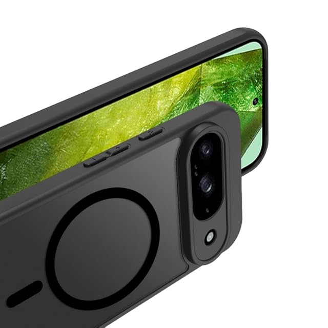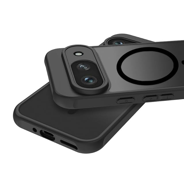 Google Pixel 9 ケース スマホカバー マット半透明 マグネット搭載 ワイヤレス充電 耐衝撃 指紋防止 滑り止め 米軍MIL規格・Magsafe対応 カバー インチ PinLiSheng (ブラック, Google Pixel 9)