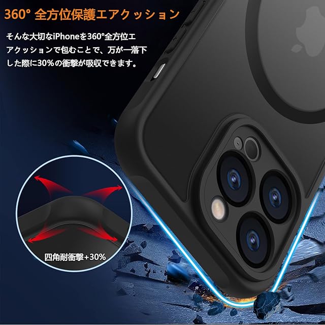 商品名:iphone 14 pro max ケース iphone ケース iphone 14 pro max ケース スマホカバー マット半透明 マグネット搭載 ワイヤレス充電 耐衝撃 指紋防止 滑り止め 米軍MIL規格・Magsafe対応 アイフォン14 pro max 用カバー インチ PinLiSheng (ブラック, iphone 14 pro max)