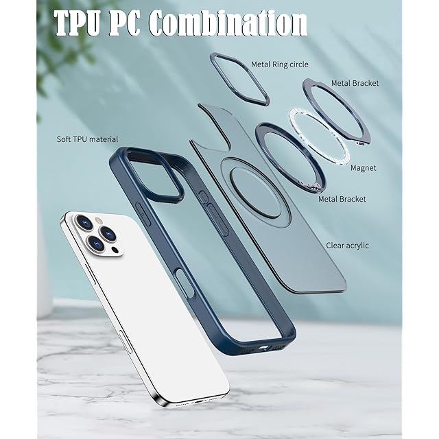 商品名:iPhone 16 Pro ケース iphone ケース iPhone 16 Pro ケース スマホカバー マット半透明 マグネット搭載 ワイヤレス充電 耐衝撃 指紋防止 滑り止め 米軍MIL規格・Magsafe対応 アイフォン16 Pro 用カバー インチ PinLiSheng (ネイビー, iphone 16 pro)