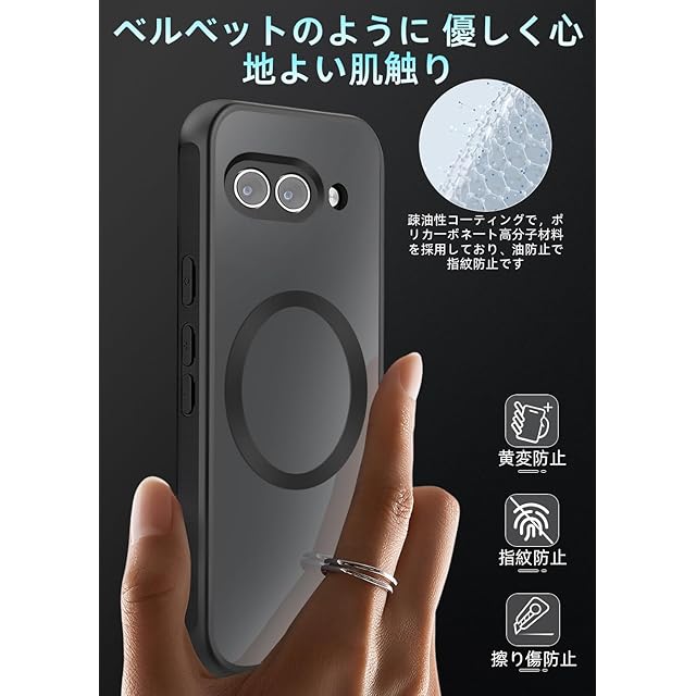 商品名:ZXZone ケース Pixel 9A 用 ケース【Magsafe対応】 ピクセル9 A カバー 電光質感 耐衝撃 画面保護 レンズ保護 米軍MIL規格 滑り止め 指紋防止 黄変防止 ストラップホール付き ワイヤレス充電対応 スマホケース ブラック (Pixel 9 A 対応)