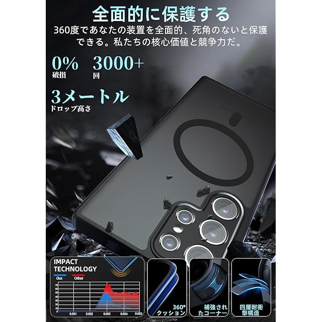 【対応機種】Galaxy S25 Ultra 用【超高耐衝撃性】角部分にAIRクッション搭載により、落下時の衝撃を瓦解・吸収する効果があり、いくら落としても布団に飛び込んだみたいな感触を与えます。背面は硬いPC素材で作られて側面はSGS認証されたの最高級TPU素材を採用して弾力性があり脱着しやすくて落下などの衝撃を分散・吸収できます。装着の際に本体を傷つける心配もありません。高い耐衝撃性を持て、携帯電話をしっかりと守ります。