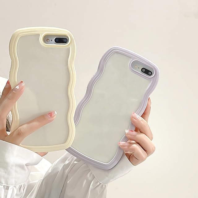 UEEBAI 対応 iPhone 7 Plus/iPhone 8 Plus 用の ケース ソフト TPU カバー 可愛い おしゃれケース 透明 ウェーブ デザイン スマホケース ワイヤレス充電対応 軽量 薄型 耐衝撃 人気 波型 バンパー スマホケース - パープル