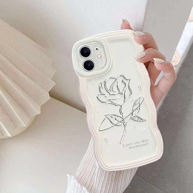 UEEBAI 対応 iPhone 14 6.1 inch 用の ケース ソフト TPU カバー 可愛い おしゃれケース 透明 ウェーブ デザイン スマホケース ワイヤレス充電対応 軽量 薄型 耐衝撃 人気 波型 バンパー スマホケース - ホワイト・ローズ