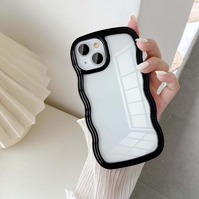 UEEBAI 対応 iPhone 14 Plus 用の ケース ソフト TPU カバー 可愛い おしゃれケース 透明 ウェーブ デザイン スマホケース ワイヤレス充電対応 軽量 薄型 耐衝撃 人気 波型 バンパー スマホケース - ブラック