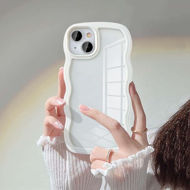 UEEBAI 対応 iPhone 15 用の ケース ソフト TPU カバー 可愛い おしゃれケース 透明 ウェーブ デザイン スマホケース ワイヤレス充電対応 軽量 薄型 耐衝撃 人気 波型 バンパー スマホケース - ホワイト