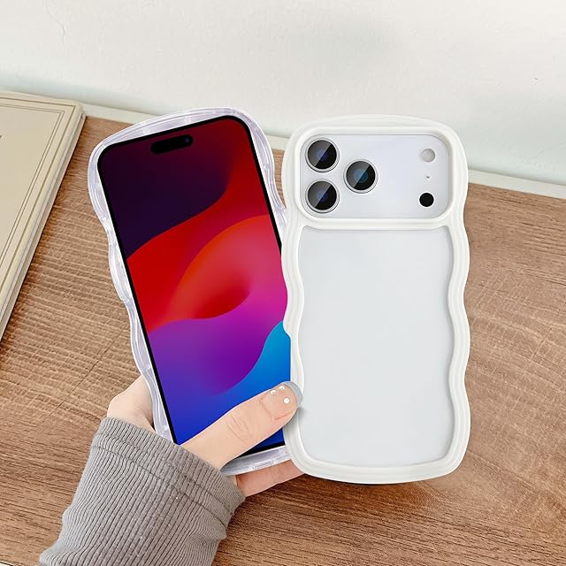 UEEBAI 対応 iPhone 17 Pro Max 用の ケース ソフト TPU カバー 可愛い おしゃれケース 透明 ウェーブ デザイン スマホケース ワイヤレス充電対応 軽量 薄型 耐衝撃 人気 波型 バンパー スマホケース - ホワイト