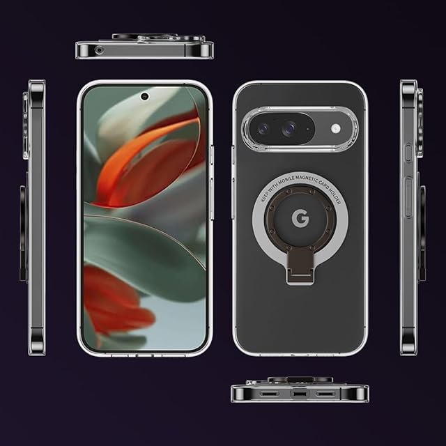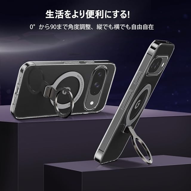 商品名:For Google Pixel 9 / Pixel 9 Pro ケース 透明 金属リング付き グーグル ピクセル9/9Pro クリア ケース タンド機能 ストラップホール付き 擦り傷防止 滑り止め 落下防止(Google Pixel 9 透明ケース)