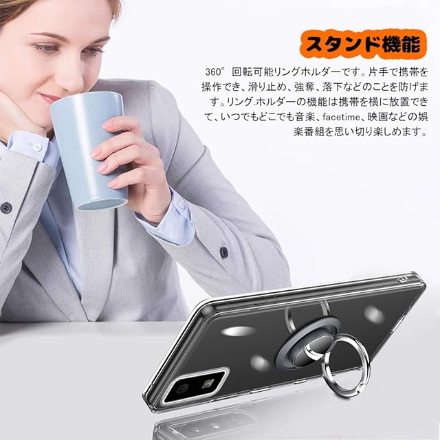 商品名:対応 AQUOS Wish3 ケース SH-53D A302SH リング付き 透明 ウィッシュ3 スマホケース リング クリア シリコン 薄型 スタンド機能 耐衝撃 耐久 滑り止め(AQUOS Wish3 クリア)