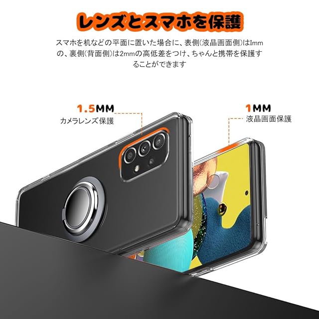 商品名:対応 Galaxy A51 5G SCG07 ケース リング付き 透明 ギャラクシーA51 スマホケース リング クリア シリコン 薄型 スタンド機能 耐衝撃 耐久 滑り止め(Galaxy A51 5G クリア)