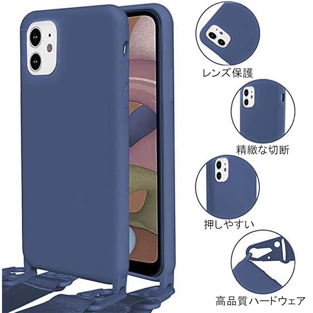 商品名:UnnFiko For iPhone 11 ケース ネックストラップ スマホケース 蛍光色 シリコン アイフォン 11 ケース シンプル ソフト 保護カバー 携帯ストラップ 紐付き 斜めがけ (iPhone 11, Blue)